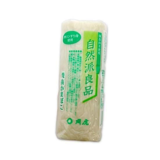 スケソウダラすり身と南ダラすり身を丹念に擂り上げ、板に付けてから直火でじっくりと板の下から焼き上げる山口県伝統製法で仕上げた高級感あふれる蒲鉾です。表面の「ちりめんじわ」と「しなやかでしっかりとした弾力」が特徴です。程よい板の香りが魚の風味をより一層引き立てます。